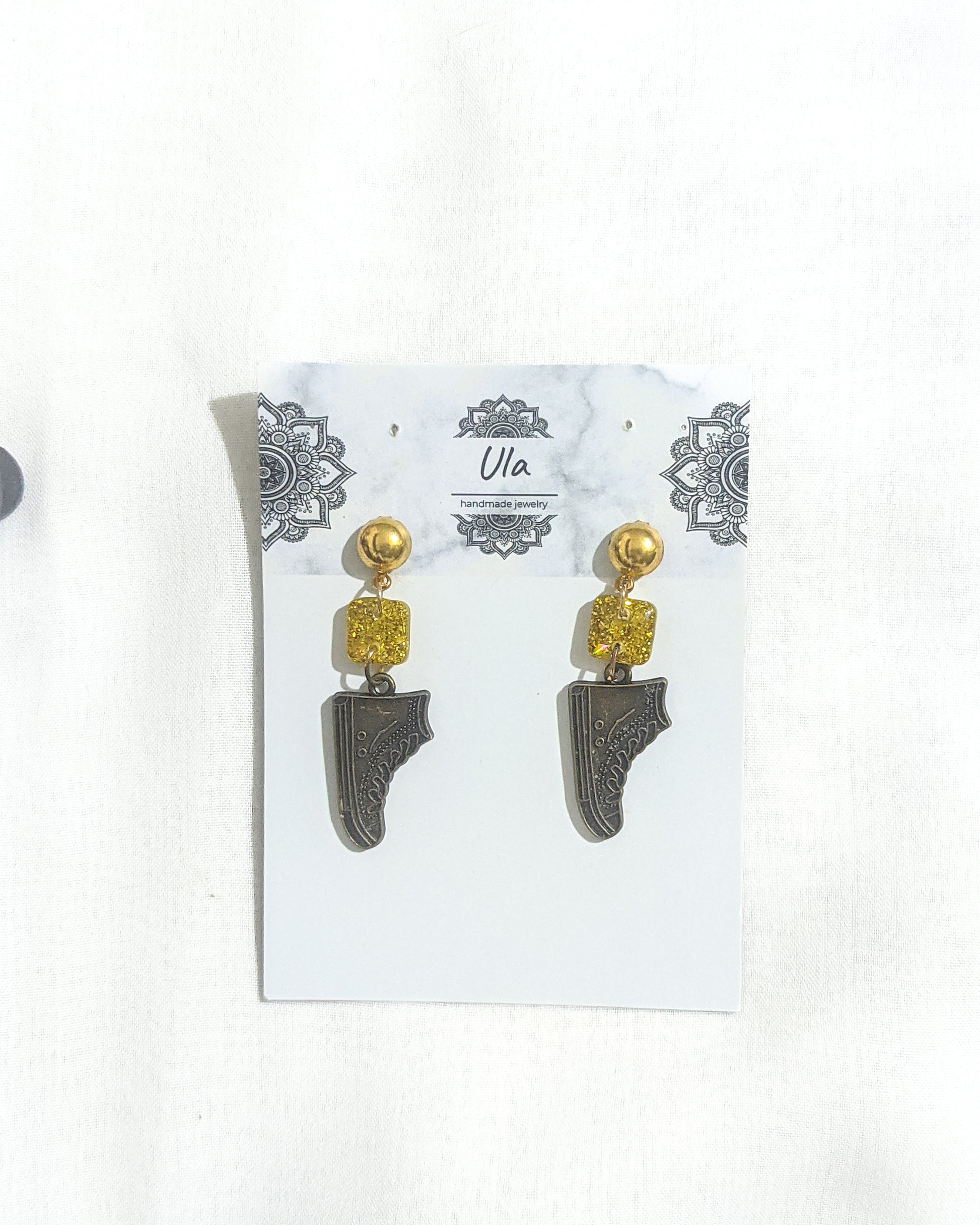 Materials Summary: Silver Plated Findings, Brass Findings, Resin, Glitter